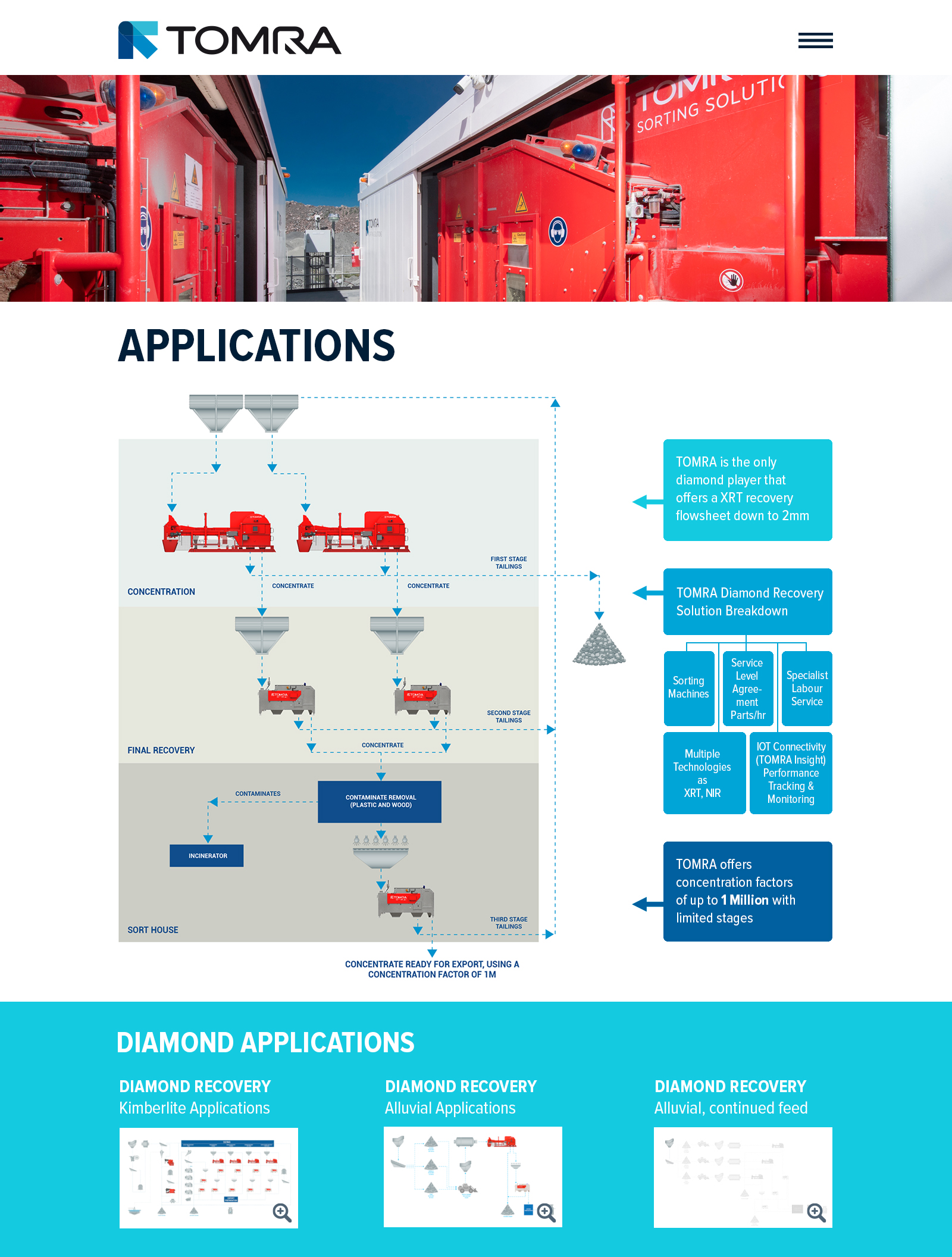 A abordagem da TOMRA no desenvolvimento de seu novo microsite sobre diamante reflete a abordagem holística da empresa para apoiar seus clientes: ao abrir um acesso fácil a informações técnicas abrangentes, permite aos produtores de diamantes compreender as possibilidades oferecidas por suas soluções de recuperação, como eles se encaixariam em suas operações como eles estariam agregando valor.