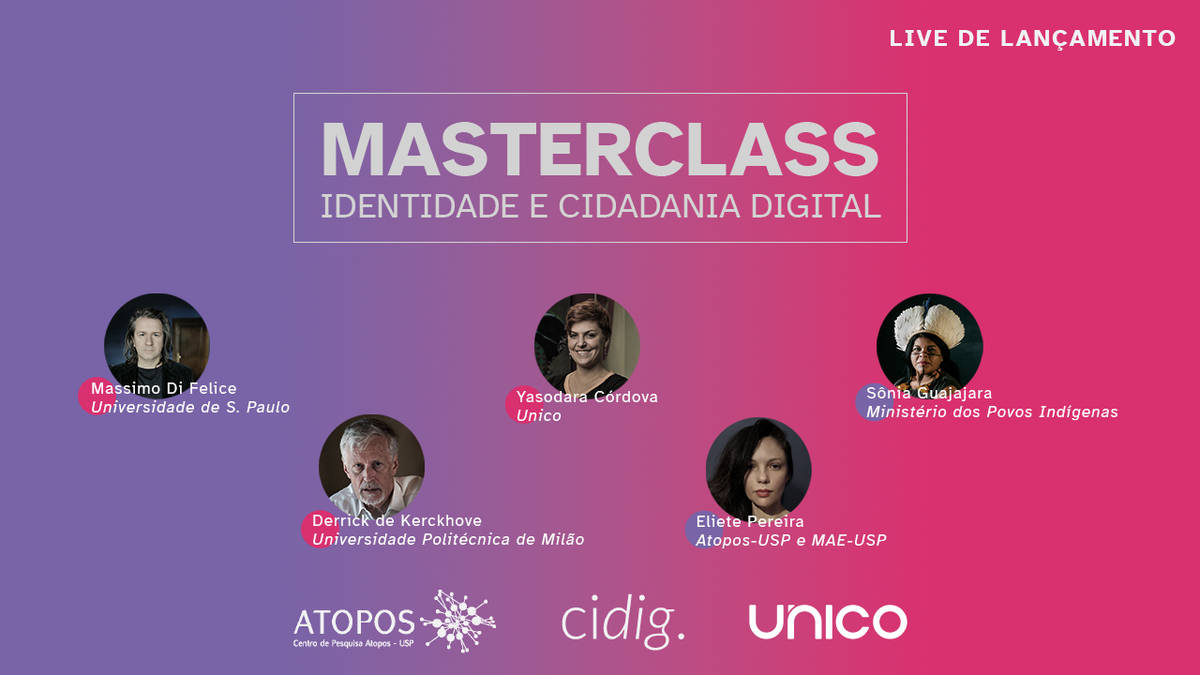 Presença confirmada do coordenador científico do Atopos, Massimo Di Felice, e do diretor de comunicação da Unico, Pedro Henrique Oliveira – Peagá Oliveira. Outros professores das masterclasses estarão conosco para falar de suas aulas e responder perguntas que você poderá enviar pelo chat!