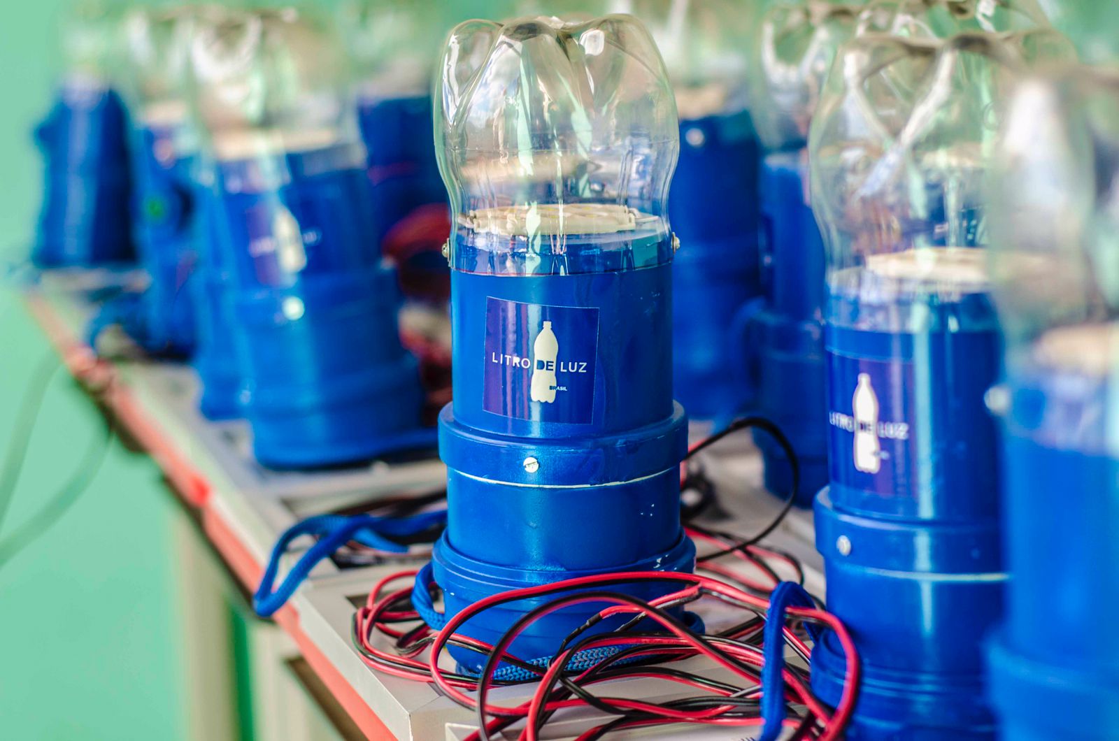 Presente nas 5 regiões brasileiras, o Litro de Luz Brasil leva iluminação solar a comunidades sem acesso à energia ou sem luz nas ruas por meio de postes, lampiões e soluções solares compostas por materiais simples como garrafa PET e canos PVC, além de placa solar, bateria e LED.