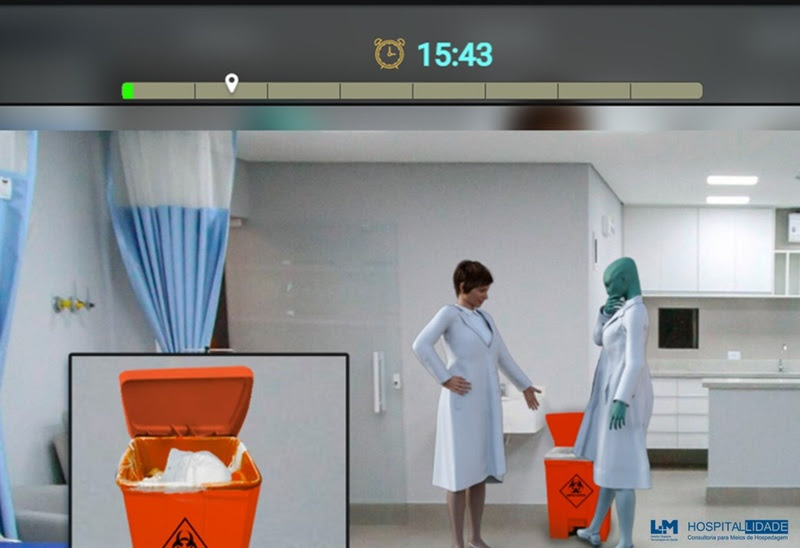 “A essência da gamificação é ensinar o mesmo conteúdo de uma aula tradicional, mas de uma forma atraente. Sua pontuação estimula o espírito de competição natural do adulto, envolvendo cada vez mais o participante”, explica Fernanda Ribeiro de Araújo Oliveira, gestora de Educação Corporativa do Hospital do GRAACC. Num ambiente hospitalar, o gerenciamento de resíduos visa reduzir sua geração e dar a destinação correta a esses materiais de modo a mitigar seu impacto sobre o meio ambiente.