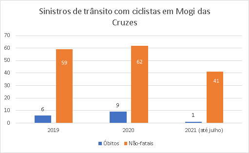 Segundo levantamento feito pelo Infosiga , a plataforma do governo estadual que monitora as ocorrências de trânsito em 645 municípios de São Paulo, de janeiro de 2019 a julho de 2021, as ruas e avenidas de Mogi das Cruzes causaram 16 óbitos de ciclistas. Outros 162 se envolveram em sinistros sem fatalidade.