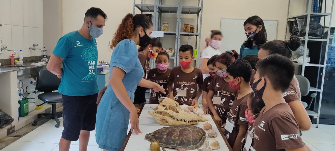 Realizada pelo Instituto Peabiru e Associação Sarambuí, com apoio do Laboratório de Ecologia de Manguezal (LAMA), da Universidade Federal do Pará (UFPA), a iniciativa é patrocinada pela Petrobras e desenvolve ações pedagógicas de reforço e complementares ao currículo escolar em comunidades de reservas extrativistas que utilizam os manguezais como meio de sustento, incluindo a extração de caranguejo e a pesca.
