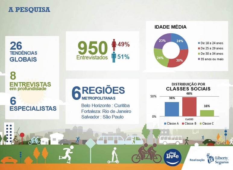 Com o objetivo de retratar a situação atual e as tendências de mobilidade urbana em seis capitais brasileiras, a Liberty Seguros lançou um estudo, desenvolvido em parceria com o instituto Teor Marketing, e fez a seguinte pergunta: “Qual é a cidade ideal para se viver?” (Veja abaixo a metodologia da pesquisa).