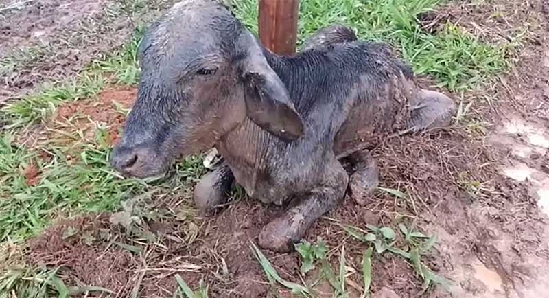 O local não tinha sistema de captação de água para os animais ou equipe de veterinários. Apenas um especialista estava no local para atendimento dos mais de 300 bezerros.