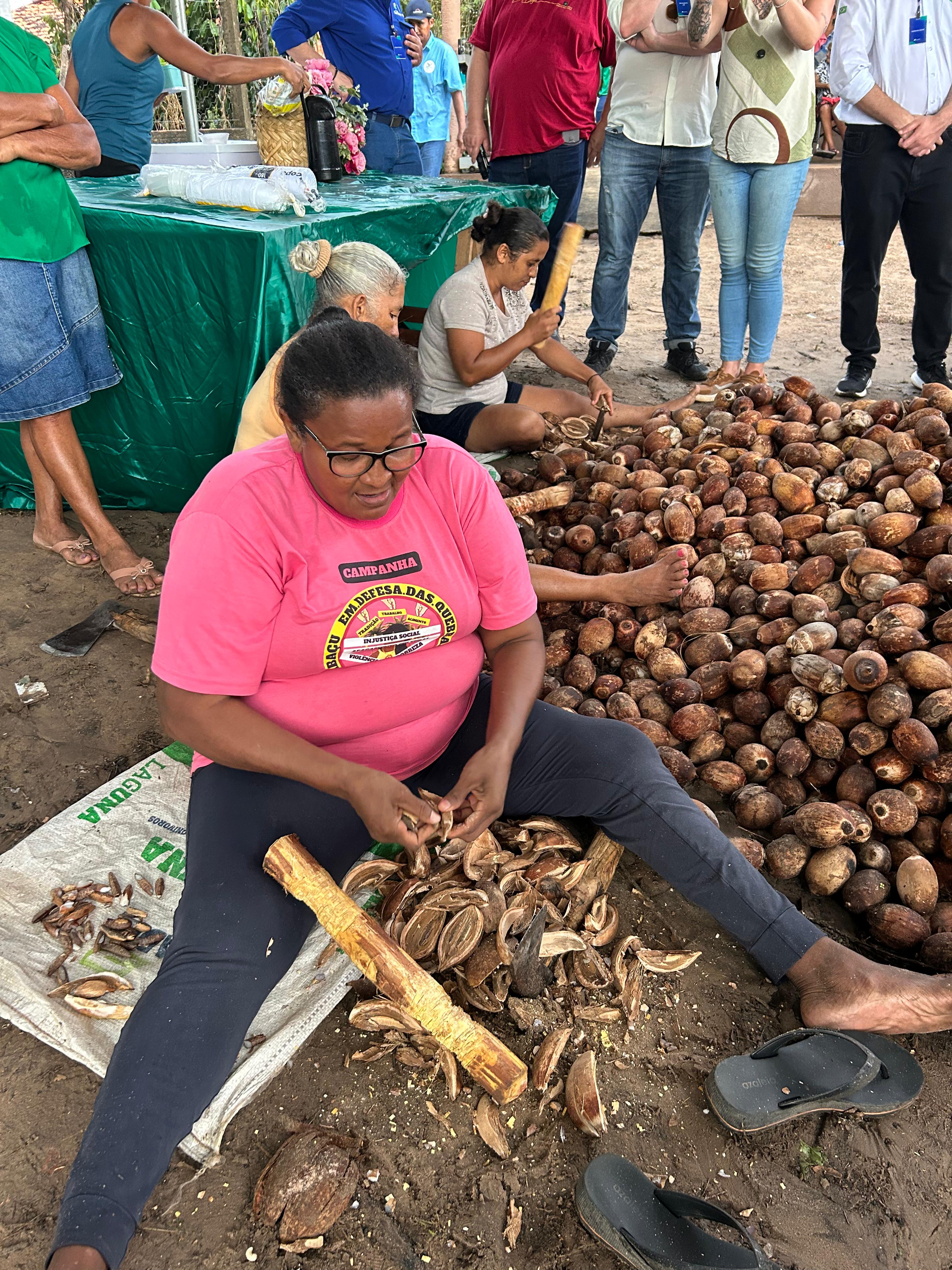 Em Coquelândia, acompanhei a demonstração da quebra do babaçu na sede da Associação Pindowa. O som ritmado dos machados abrindo os cocos parecia ecoar histórias antigas — de resistência, de sustento e de identidade.