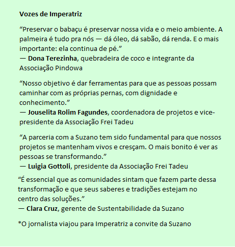 Mas algo parece claro: em Imperatriz, há um diálogo vivo entre indústria, natureza e gente. Nem sempre perfeito, mas real. E, sob a sombra da Sumaúma — árvore que dá nome a um dos projetos e símbolo da floresta que resiste —, talvez esteja brotando um modelo de convivência mais equilibrado entre produção e preservação.